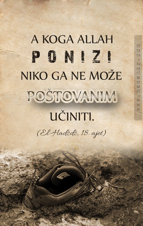 Naslovnica Multimedija Foto islam - islamske slike i citati Citati iz Kur'ana: “A koga Allah ponizi, niko ga ne može poštovanim... MultimedijaFoto islam - islamske slike i citati Citati iz Kur'ana: “A koga Allah ponizi, niko ga ne može poštovanim učiniti” Od - Datum uređivanja: 17. jul 2019. 3607 FacebookTelegramWhatsAppViberTwitter “A koga Allah ponizi, niko ga ne može poštovanim učiniti. – Allah ono što hoće radi” (El-Hadždž, 18) Kliknite na sliku za veći prikaz.
