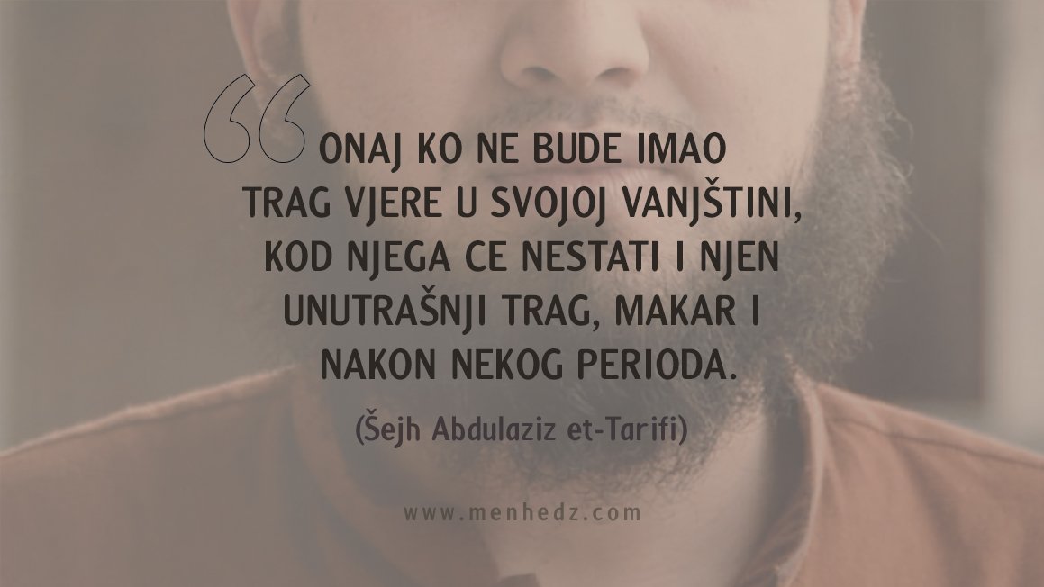 Naslovnica Multimedija Foto islam - islamske slike i citati Foto citat: Onaj ko ne bude imao vanjski trag vjere, kod njega... MultimedijaFoto islam - islamske slike i citatiIslamIslam za početnikePoziv u islam Foto citat: Onaj ko ne bude imao vanjski trag vjere, kod njega će nestati i njen unutrašnji trag Od - Datum uređivanja: 12. jan 2020. 1121 FacebookTelegramWhatsAppViberTwitter Onaj ko ne bude imao trag vjere u svojoj vanjštini, kod njega će nestati i njen unutrašnji trag, makar i nakon nekog perioda. (Šejh Abdulaziz et-Tarifi) Klikni na sliku za prikaz u punoj veličini.