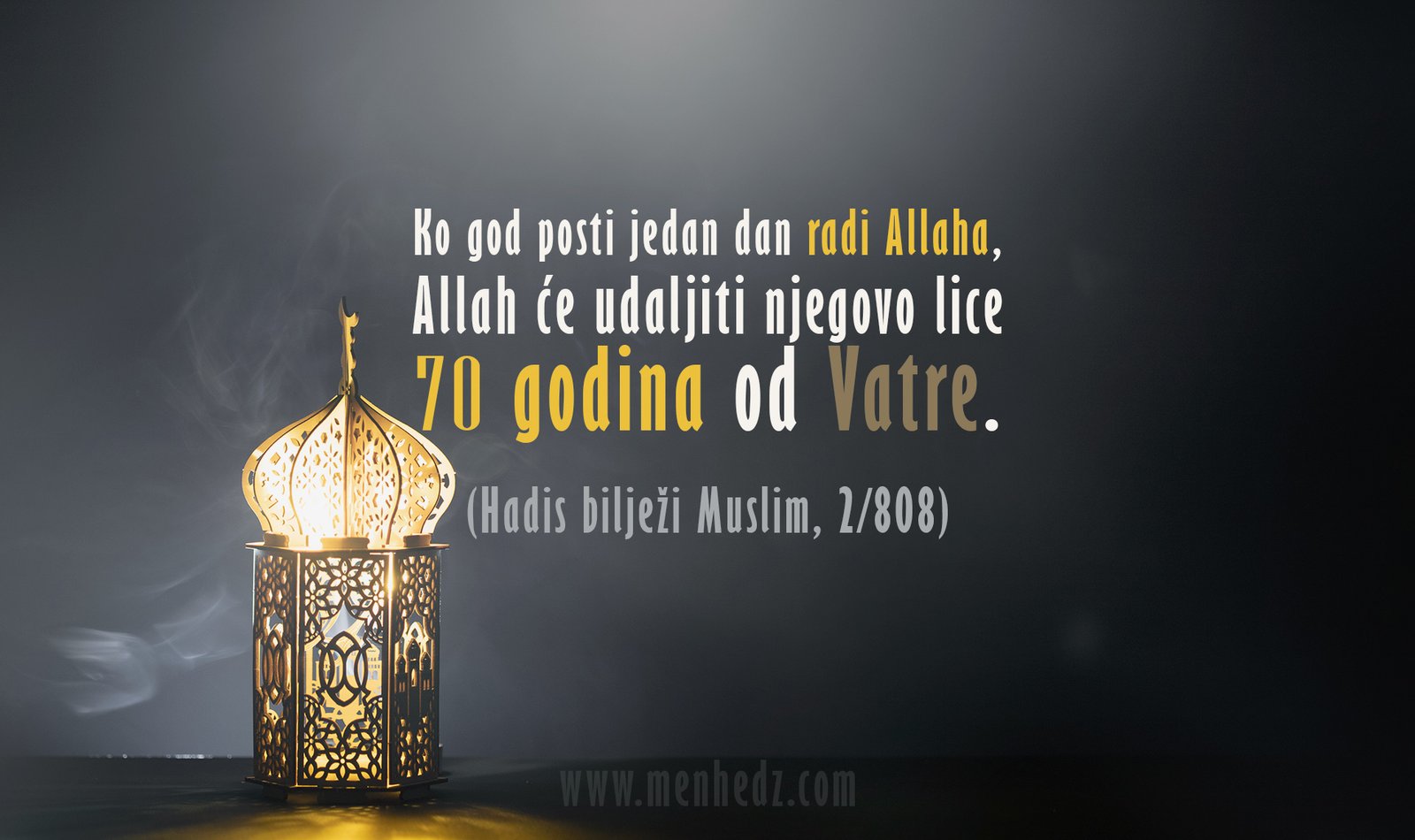 Ko god posti jedan dan radi Allaha, Allah će udaljiti njegovo lice 70 godina od Vatre.