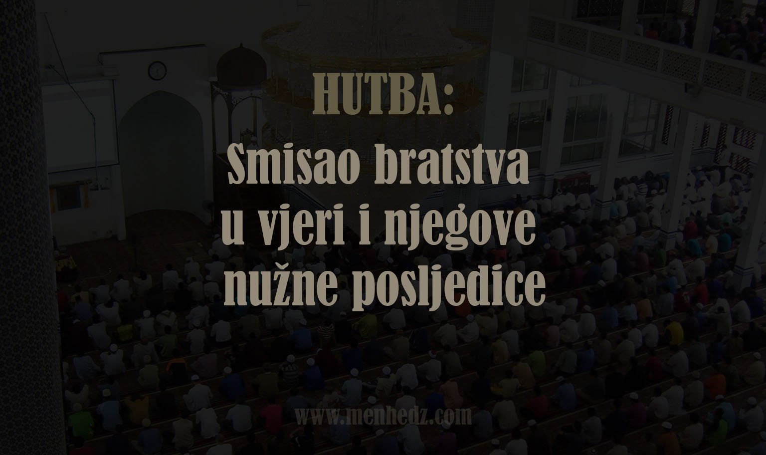 Hvala Allahu, Gospodaru svih svjetova, Koji je mu'mine (vjernike) braćom učinio i ljubav vjerničku medu njima raširio i Koji im je zabranio da se razilaze i da se za zavidnima i smutljivcima povode. Svjedočim da nema drugog boga osim Allaha, lstinitog i Pravog Gospodara, i svjedočim da je Muhammed Njegov rob i Njegov iskreni i povjerljivi poslanik. Neka je salavat Allahov i selam neizmjerni, do Sudnjeg dana, na njega, njegovu porodicu i ashabe, koji su Pravim putem vodili i na njemu pravedni bili.