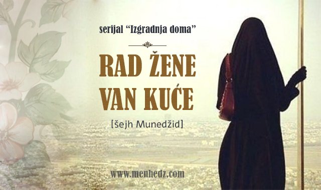 Osnova je da žena ne radi van svoje kuće osim ako je u stvarnoj potrebi za tim, kao što je slučaj Musaa, alejhis-selam, kada je ugledao kćerke onog dobrog čovjeka, koje su čuvale svoje ovce, i uvijek morale da zadnje napajaju ovce, pa ih je upitao: