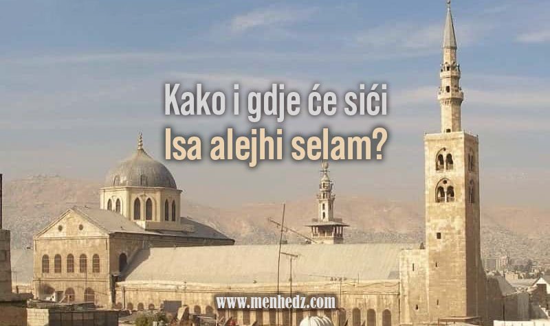 “Najraširenije mišljenje o mjestu silaska je da će to biti bijela munara u istočnom dijelu Damaska. Sići će, bit će proučen ikamet za sabah-namaz, pa će mu se reći: ‘Klanjaj nam kao imam, o ruhu Allahov!’ A on će uzvratiti: ‘Ti predvodi2, jer za tebe je uspostavljen.’ U drugoj predaji stoji da je još rekao: ‘Vaši su predvodnici od vas samih, a to je počast od Allaha ovom ummetu.’ Ova je munara ponovo sagrađena u našem vremenu, 741. hidžretske godine (vrijeme življenja autora, op.M), od bijelog kamenja, i to od imetka kršćana, jer su oni bili spalili munaru koja je prethodno bila tu. Očigledno je da ovaj slučaj može ući u dokaze Poslanstva, jer je Allah učinio da se ponovo sagradi kršćanskim imetkom, i da bude baš bijele boje. Sve dok tu ne siđe Isa sin Merjemin, koji će ubiti svinju, slomiti krst i neće od njih primati džizju.”3