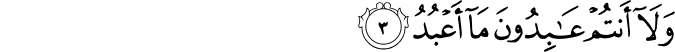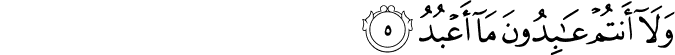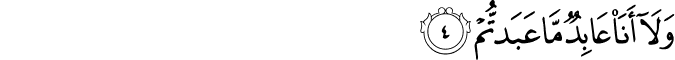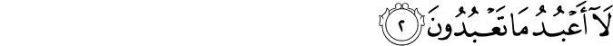 Transliteracija: Qul jaa ejjuhe-l-kaafiruune laa ‘a'budu maa ta'buduun, ve laa entum ‘aabiduune ma ‘a'bud, ve laa ene ‘aabidun maa ‘abettum ve laa entum ‘aabiduune ma ‘a'bud. Lekum diinukum ve lije diin. (Kafirun, 1-6)