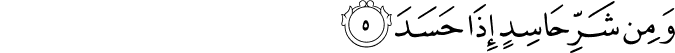 Transliteracija: Qul e'uuzu birabbi-l-feleq, min šerri maa haleq, ve min šerri gaasiqin izaa veqab, ve min šerrin-neffaas-aati fi-l-‘uqad, ve min šerri haasidin izaa hased. (Feleq, 1-5)