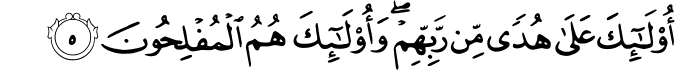 Transliteracija: Elif laam miim. Zaalike-l-kitaabu laa rejbe fiih, hudelli-l- mutteqiin. Elleziine ju'minuune bi-l-gajbi ve juqiimuunessalaate ve mimmaa rezaqnaa hum j unfiquun. Velleziine ju'minuune bimaa unzile ilejke ve maa unzile min qablike ve bi-l-aahireti hum juuqinuun. Ulaa'ike ‘alaa hudem-mirrabbihim ve ulaa'ike humu-l-muflihuun. (El-Beqare, 1-5)