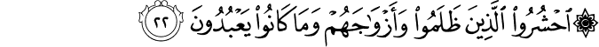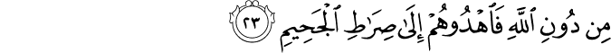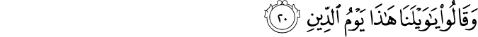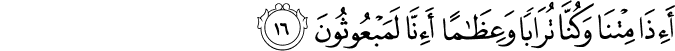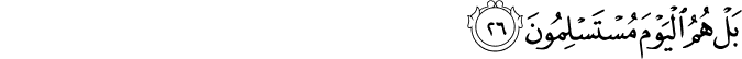 Transliteracija: Festeftihim ehum ešeddu halqan em-men halaqnaa, innaa halaqnaahum min tiinin laazib. Bel ‘adžibte ve jesharuun. Ve izaa zukkiruu laa jezkuruun. Ve izaa re ev aajeten jesteshiruun. Ve qaaluu in haazaa illaa sihrun mubiin. E izaa mitnaa ve kunnaa turaaben ve ‘izaamen e innaa lemeb'uusuun. Eve aabaa'une-l-evveluun. Qune'am ve entum daahiruun. Fe innemaa hije zedžretun vahidetun fe izaa hum jenzuruun. Ve qaaluu jaa vejlenaa haazaa jevmud-diin. Haazaa jevmu-l-faslil-lezii kuntum bihii tukezzibuun. Uhšurulleziine zalemuu ve ezvaadžehum ve maa kaanuu ja'buduune min duunillaahi feh duuhum ilaa siraati-l-džehiim, ve qifuuhum innehum mes uuluun. Maa lekum laa tenaasaruun. Bel humu-l-jevme musteslimuun. (Es-Saffat, 11-26)