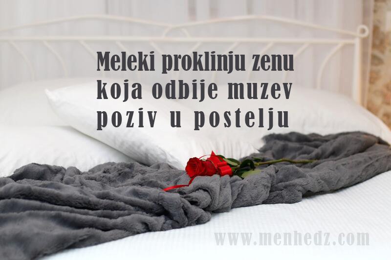 2 EI-Buhari i Muslim bilježe od Ebu Hurejre, radijallahu anhu, da je rekao: “Vjerovjesnik, sallallahu alejhi ve sellem, rekao je: ‘Kada žena svojevoljno zaspi izvan postelje svoga muža, meleki je proklinju do zore.’“3 U drugoj verziji stoji dodatak: “…sve dok mu se ne vrati.”4