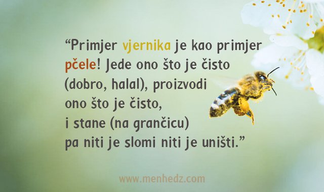 Pčela putujući od svoje ćelije do cvijeta nikog ne uznemirava niti ikom pravi probleme, baš kao vjernik koji gleda samo svoja posla i ostavlja ono što ga se ne tiče, kao što Poslanik, sallallahu alejhi ve sellem, opisuje potpunog vjernika.