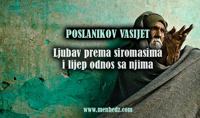 Koliko je potrebno da naši uvaženi intelektualci, vjersko-prosvjetni radnici, odgovorni i imućni, a pogotovo učenjaci i imami, koji bi trebali biti nasljednici Allahovog Poslanika, čuju preporuku Poslanika i u praksu sprovedu ovaj vasijjet. Gledao sam i slušao desetine primjera kako se vjerničko srce lomi i povjerenje gubi zbog daljine ovog vasijjeta od prakse današnjih muslimana, jer je u adetu mnogih naših uglednih i bogatih predstavnika da se druže s bogatim i posjećuju isključivo bogate, tamo gdje je neka vrsta koristi zagarantovana. Međutim, praksa i vasijjeti najuglednijeg i najboljeg Allahovog stvorenja upravo su suprotni. Imajmo na umu i izreku Ibn Muaza, koji je rekao: „Tvoja ljubav prema siromašnim jeste karakter Poslanika, ljubav prema njihovim sijelima jedan je od znakova časnih-salihina, bježanje od njih jedan je od karaktera munafika.” (op. prev.)