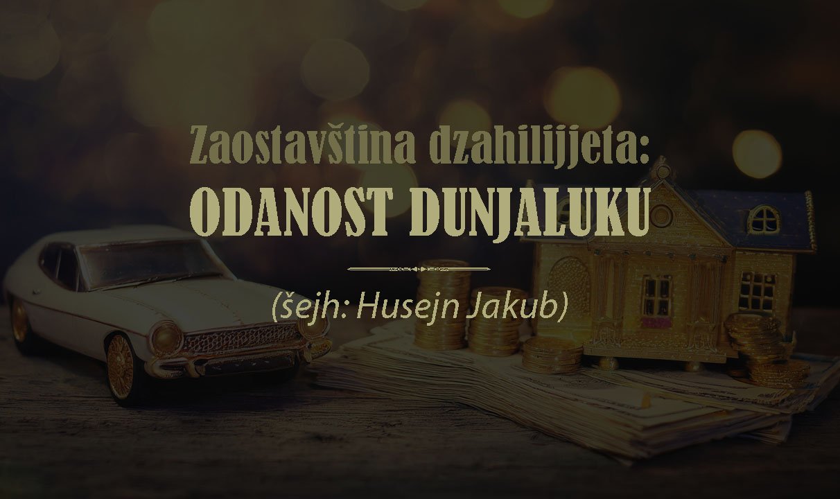 Od zaostavštine džahilijeta jeste i odanost dunjaluku i žudnja za njim. To ne zahtjeva spominjanje njegovih simptoma jer ova stvar nije nikome nepoznata. A zar se slabost nije uvukla u naša srca osim zbog ljubavi prema dunjaluku?! Neprijatelji islama nisu nasrnuli na nas osim onoga momenta kada smo se pozabavili dunjalukom na račun naše vjere i bili iskušani dunjalukom ostavljajući pripremu za ahiret. Sve nade, snove i predstave, ljudi počeše graditi na temelju dunjaluka kao da je on kuća vječnosti i kao da na ovaj svijet nisu došli osim da bi sakupljali njegove prolazne naslade.
