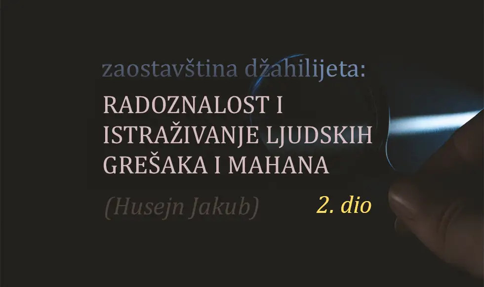 Draga braćo! Glavni razlog ove opake bolesti istraživanja ljudskih mahana i nedostataka jeste okupiranost ljudima, a ne svojom dušom.